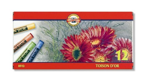Pastele suche TOISON D'OR odznaczają się paletą trwałych kolorów i jednolitością pigmentu w masie pasteli. Są bardzo kruche i delikatne, dzięki czemu świetnie się rozcierają, a przez co są bardzo podatne na złamania. Do rysowania pastelą zalecane jest używanie papieru z fakturą, gdyż łączy się z podłożem tylko w sposób mechaniczny (mikro zagłębienia w fakturze papieru). Dlatego po ukończeniu pracę należy zabezpieczyć fiksatywą lub przykryć szybą. Komplet 12 kolorów.