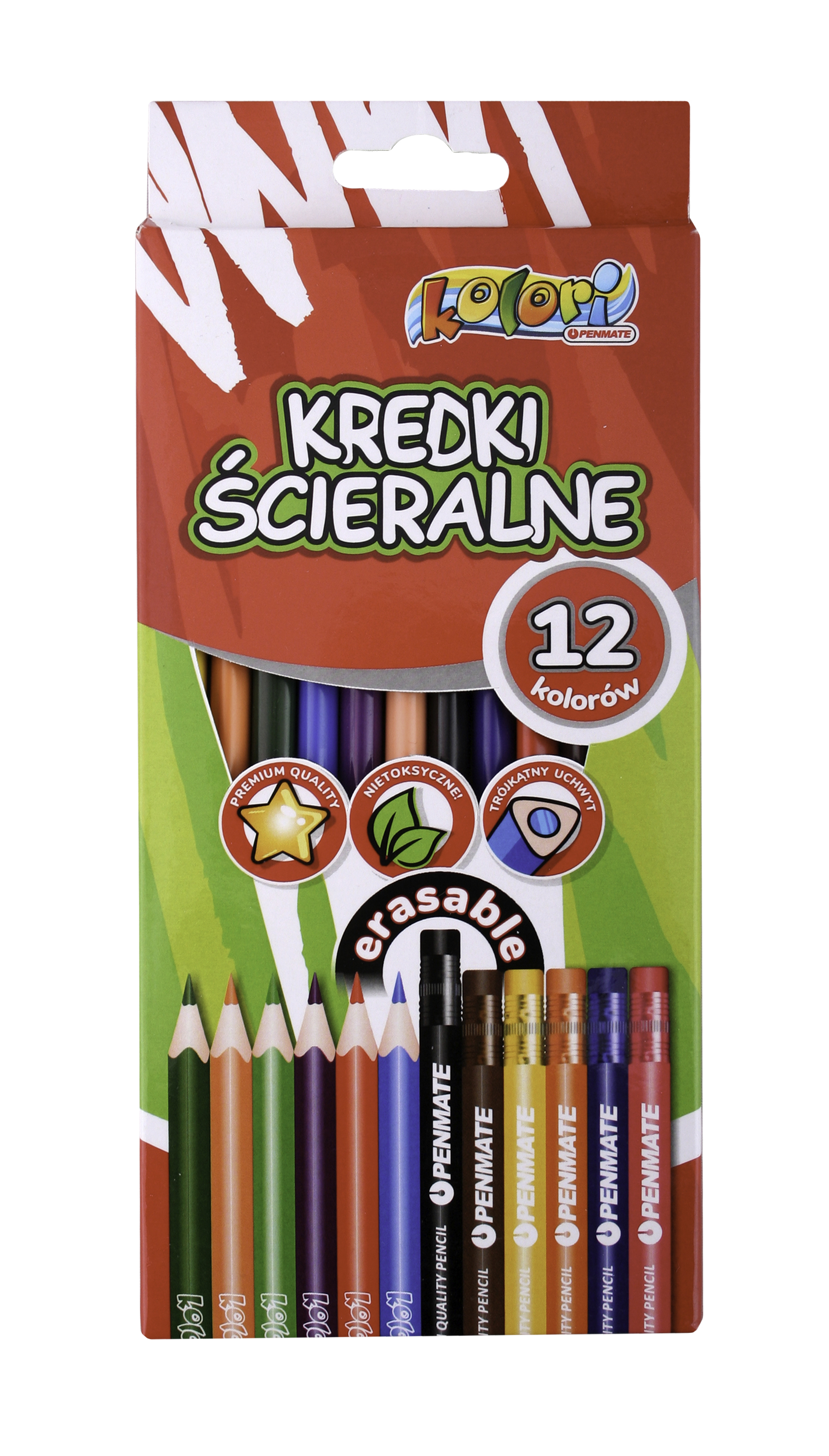 Kredki Premium Kolori ścieralne 12 kolorów PENMATE