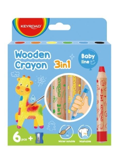 Kredki świecowe KEYROAD, Colorix 3 in 1, Jumbo, z temperówką, 6 szt., zawieszka