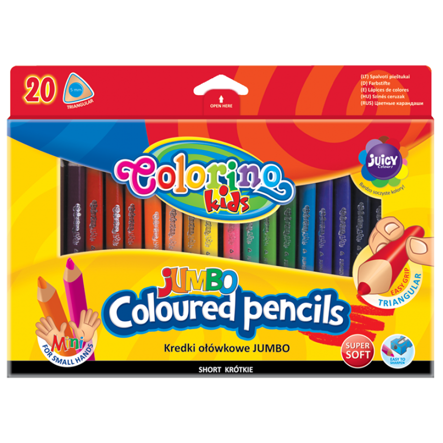 Kredki trójkątne 20 kolorów Jumbo mini Colorino Patio