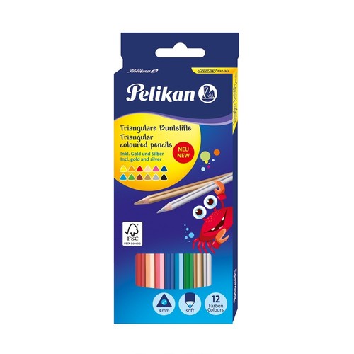 Kredki trójkątne grube 12 kolorów+złota i srebrna