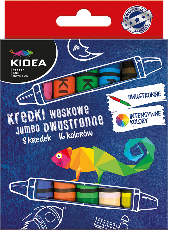 Opis produktuZasady bezpieczeństwaW zestawie znajduje się 8 kredek dwustronnych i jednocześnie 16 dobrze kryjących kolorów. Kredki nie kruszą się podczas rysowania co zapewnia komfort tworzenia prac plastycznych. Nie wymagają temperowania. x