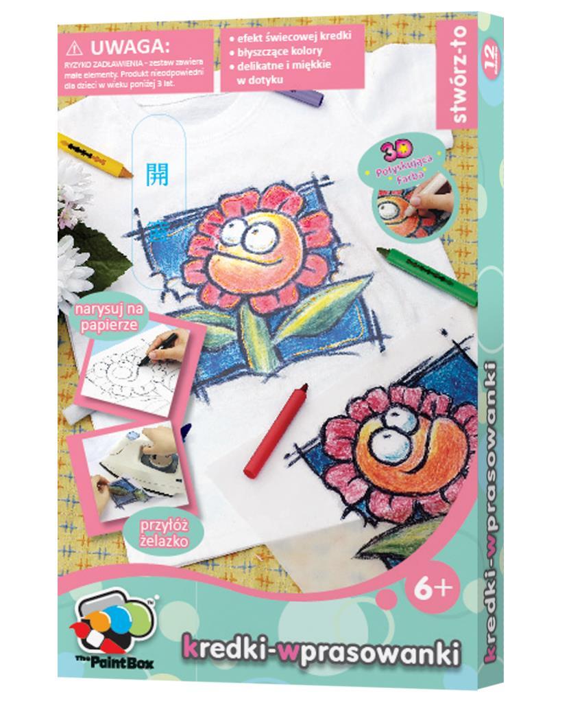 Kredki wprasowanki do tkanin w12 kolorach.Zawartość:12kredek wprasowanek1 brokatowa farba 3D1 instrukcja obslugi