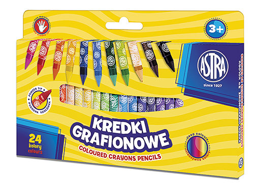 Opis produktuZasady bezpieczeństwaKredki z glinki kaolinowej - 24 kolory. Żywe i intensywne kolory, doskonałe właściwości kryjące. Nie wymagają temperowania i nie brudzą rąk. Nadają się do rysowania na wszystkich rodzajach papieru. x