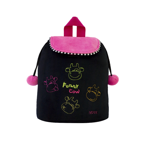 Pluszowy plecak z kolekcji Krówka Funny. Plecak w kolorze czarnym z różowymi elementami. Wysoka jakość wykonania.