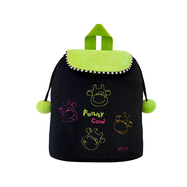 Pluszowy plecak z kolekcji Krówka Funny. Plecak w kolorze czarnym z zielonymi elementami. Wysoka jakość wykonania.