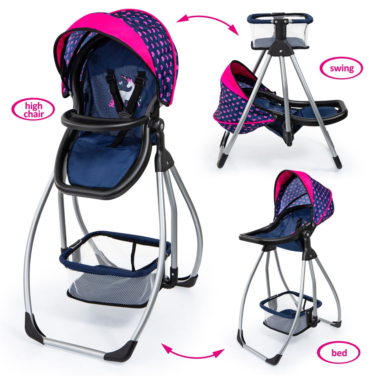 Opis produktuZasady bezpieczeństwaTo nowoczesne kolorowe krzesełko dla lalek oferuje różne możliwości zabawy. Jest odpowiednie dla lalek do 46 cm. Może być używane do karmienia lalki w pozycji pionowej, czy do drzemki lalki w pozycji leżącej. Zintegrowana taca pozwala łatwo nakarmić maleństwo. Siedzisko krzesełka można wyjąć. Może służyć jako huśtawka dla lalki. Wymiary (cm): 37,5 x 44 x 77. Wymiary opakowania 38 x 9,5 x 49 cm. x