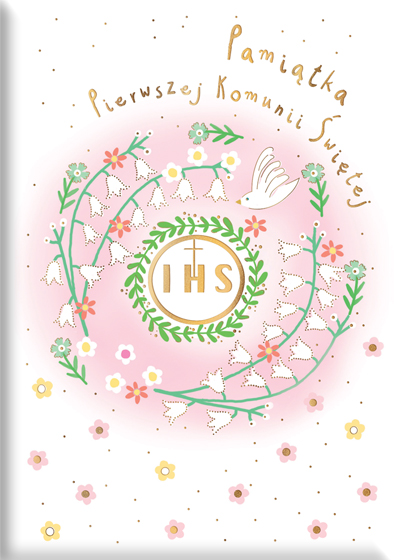 Książeczka A5 Pamiątka Komunijna. Gołąb różowa