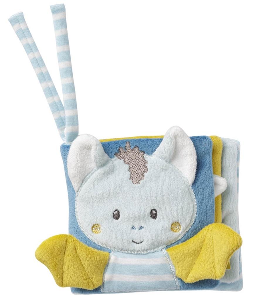 Opis produktuZasady bezpieczeństwaKsiążeczka edukacyjna Nietoperz, z kolekcji: Mały Zamek. Miękka i przytulna książeczka, która zabiera dziecko w odkrywczą podróż do zamku pełnego ciekawych postaci. Na tytułowej stronie wita nas uśmiechnięty nietoperz, z miękkimi skrzydełkami do chwytania. Po otwarciu odkrywamy małe lusterko z bezpiecznej folii. Następnie znajdujemy sympatycznego smoka, którego można targać za uszy. W dalszej podróży zobaczyć możemy złotą gwiazdkę i rakietę skierowaną ku niebu, której naciśnięcie wyzwala delikatny dźwięk. Aż wreszcie docieramy do przyjaznego, białego duszka i pięknego zamku, który szeleści pod paluszkami. Dzięki dodatkowym wstążeczkom łatwo możemy zamontować książeczkę przy nosidełku, wózku, lub łóżeczku. Zabawka przeznaczona dla dzieci od najwcześniejszych dni, pobudzająca do chwytania, potrząsania, ściskania. Niezbędna do poznawania świata, wzbudzająca ciekawość, jednym słowem potrzebna zawsze i wszędzie. Każda strona to nowe doświadczenie dla maluszka. Przyjazne w dotyku materiały. Bezpieczne lusterko. Elementy interaktywne takie jak piszczałka, lusterko, szeleszczące kartki i różnorodne faktury materiału stymulują zmysły. Rozwija zdolności motoryczne i manualne. Wszystkie zabawki niemieckiej marki FEHN są bezpieczne dla dzieci od 0 lat. Wykonane są z najlepszej jakości materiałów. Spełniają normy EN71, CE, badane w instytutach ""Stiftung Warentest"" lub ""kotest. x