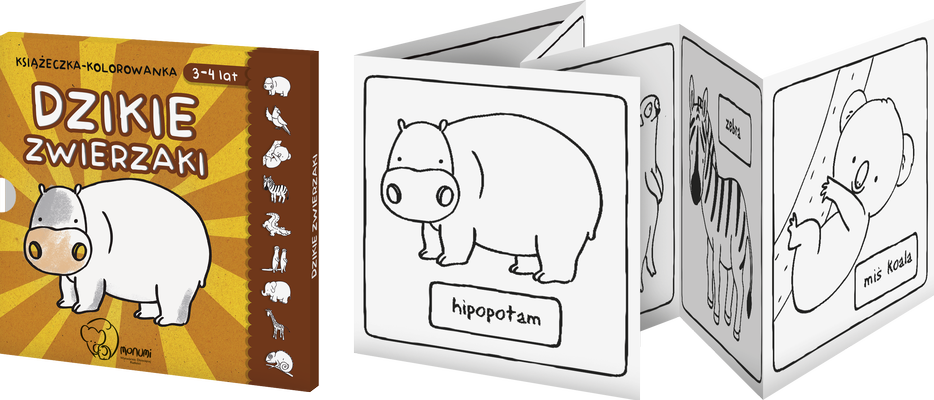 W tej niewielkiej książeczce czekają na Was sympatyczne zwierzaki, które dzieci mogą samodzielnie pokolorować tak, jak podpowiada im wyobraźnia. Ilustracje są proste i przejrzyste, a do kolorowania możecie używać kredek, flamastrów i farb.
