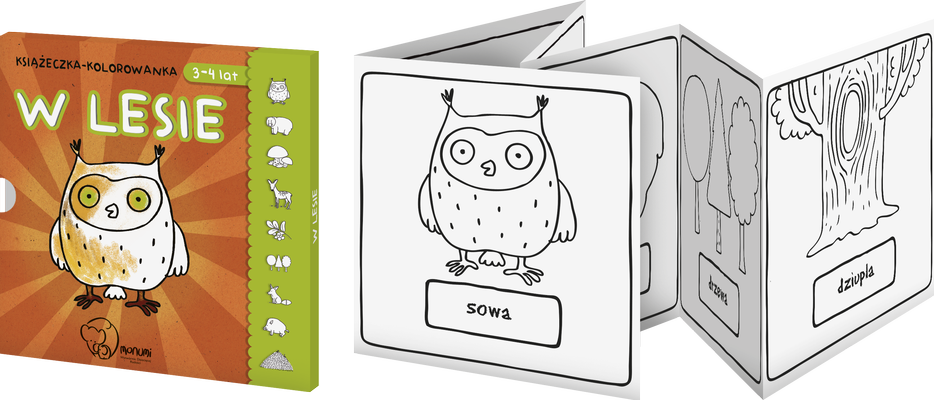 W tej niewielkiej książeczce czekają na Was mniejsze i większe zwierzęta zamieszkujące las, a dzieci mogą je samodzielnie pokolorować tak, jak podpowiada im wyobraźnia. Ilustracje są proste i przejrzyste, a do kolorowania możecie używać kredek, flamastrów i farb.