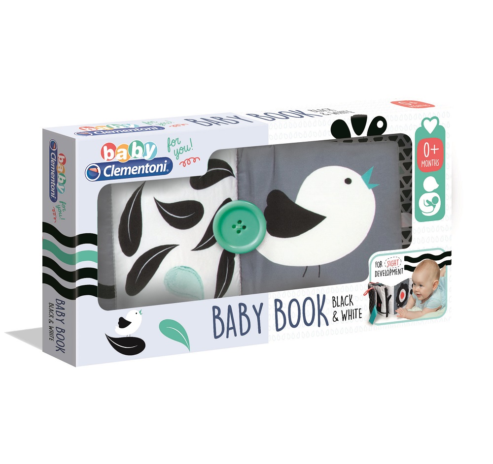 Opis produktuZasady bezpieczeństwaMiękka książeczka z czarno-białymi ilustracjami, które rozwijają percepcję wzrokową niemowląt w pierwszych miesiącach życia. o Wystarczy otworzyć książeczkę, aby na każdej stronie znaleźć inną ilustrację i aktywność, np. piszczącą zabawkę lub szeleszczący materiał. Książeczka przyciąga uwagę niemowlęcia i wspiera rozwój percepcji słuchowej. o Miękką książeczkę zamyka się za pomocą kolorowych wstążek, dzięki czemu można ją wszędzie zabrać. x