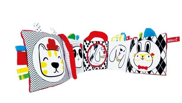 Biało-czarno-czerwona książeczka pełna jest niespodzianek. Prawa strona książeczki zawiera różnorodne rysunki zwierzątek, duże lusterko, które zaciekawi każdego malucha oraz szeleszczące strony. Druga strona książeczki uszyta jest z biało-czarnej bawełny oraz czerwonej minky, takie zestawienie materiałów i kolorów najbardziej rozwija Twoje dziecko. Wszystkie te elementy zapewnią dziecku wspaniałą zabawę na długi czas, dodatkowo stymulując jego zmysły. Książeczka jest bardzo lekka i bezpieczna dla Twojego dziecka, które może się nią bawić na płasko. Dzięki długości, aż 80 cm oraz dodatkowym sznureczkom, książeczka może służyć jako osłonka do łóżeczka.