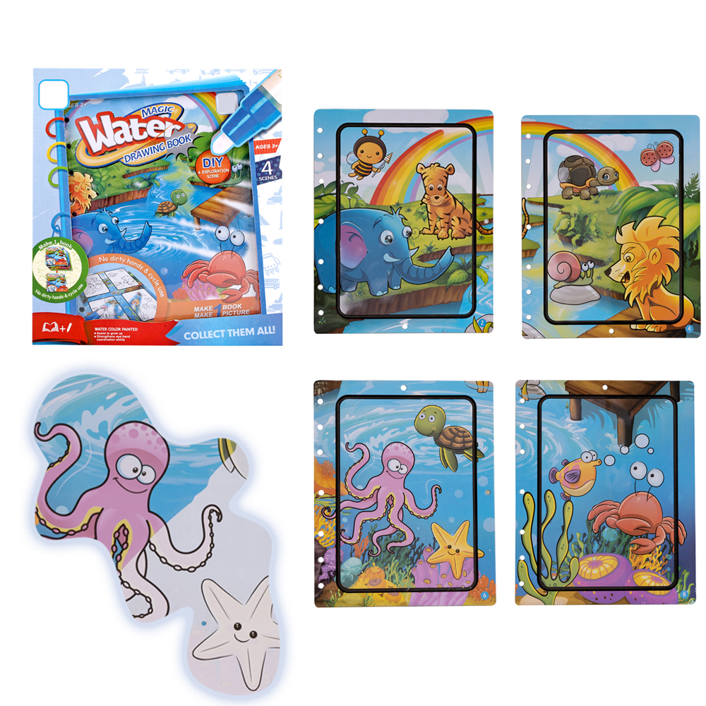 Opis produktuZasady bezpieczeństwaKolorowanka z pisakiem wodnym to 4 grube kartki, które można samodzielnie spiąć kolorowymi kółeczkami, na których można malować pisakiem napełnionym wodą.