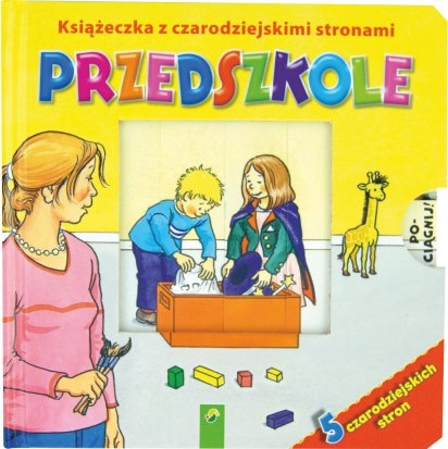 Dzięki czarodziejskim stronom zobaczycie jak wiele fajnych rzeczy dzieje się w przedszkolu. Tu każda rzecz ma swoje miejsce, a każde dziecko może stać się królewną lub kowbojem. Odwiedzimy także przedszkolny ogródek i szatnię, w której dzieci uczą się trudnej sztuki ubierania