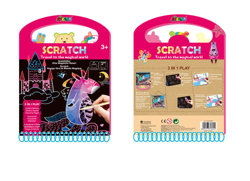 Książeczka z wydrapywankami to ciekawa propozycja dla kreatywnych dzieci. Prosta technika wydrapywania pozwala na stworzenie przepięknych oryginalnych obrazków przy niewielkim nakładzie pracy. Poręczny format książki doskonale sprawdza się, gdy dzieci są w ruchu. Zawiera 25 naklejek do zdrapek przygodowych, 10 zdrapek, 11 stron do kolorowania i drewniany rysik. Zapewnia mnóstwo zabawy dla dzieci. Wiek: 3+ Wymiary książeczki: 24 x 17 x 2 cm