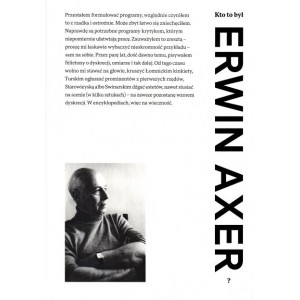 Również z powyższych powodów zdecydowaliśmy się opublikować wspomnienia studentów i współpracowników Axera oraz efekt benedyktyńskiej pracy Zenona Andrzejewskiego, który opracował biogramy rodziny Axerów - począwszy od dziadka reżysera. Ta książka jest również efektem zdumienia. Długie i bogate życie Erwina Axera nie stało się przedmiotem wielu badań. Na półce możemy postawić tylko biografię Elżbiety Baniewicz i monograficzny zeszyt „Notatnika Teatralnego”. Poza tym w czasopismach i książkach zostały opublikowane nieliczne ważne artykuły, m.in. Marty Fik, Joanny Krakowskiej, Elżbiety Matyni, Elżbiety Wysińskiej czy Jerzego Koeniga. Mamy nadzieję, że książka przybliży do pewnego stopnia życie, osobę i dzieło Erwina Axera. Pytanie „kto to był Erwin Axer?” pozostaje bowiem otwarte.