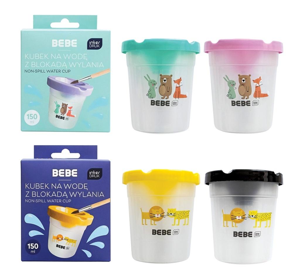 Opis produktuZasady bezpieczeństwaMiks wzorów. Towar wysyłamy losowo. Cena dotyczy jednej sztuki. Pojemność: 150 ml. Kubek dla najmłodszych ze specjalną blokadą przeciw wylaniu wody. Praktyczne wyprofilowane miejsce w pokrywce służy do odkładania pędzelków, a dodatkowa zatyczka umożliwi bezpieczne przenoszenie pełnego kubka. Na kubku podobizny zwierzaków BEBE. Wymiary pudełka: 8,1x8,1x9,1 cm. Wymiary kubka: średnica 8 cm, wysokość 9 cm. x