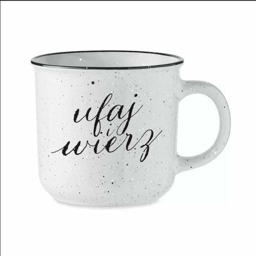 Nakrapiany wzór może mieć różną intensywność, co sprawia, że każdy kubek jest trochę inny. x