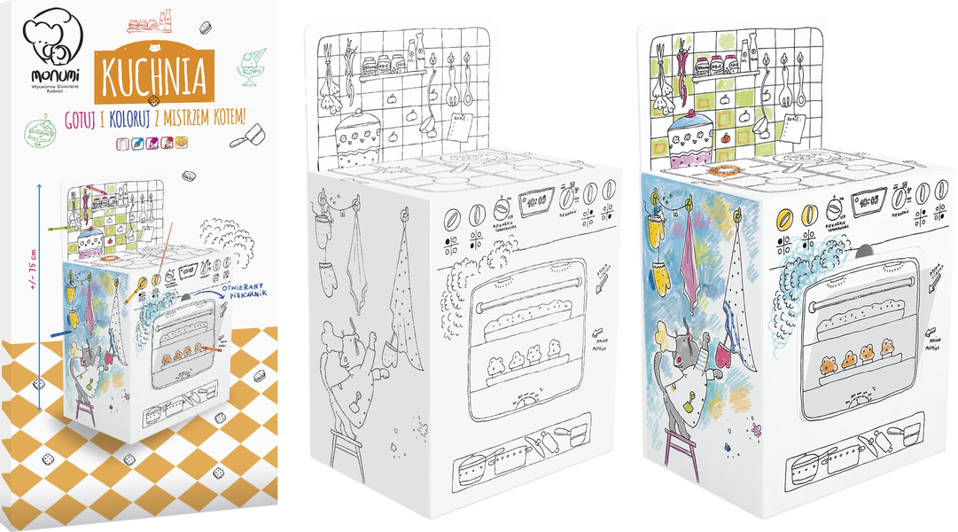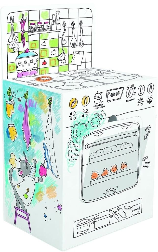 Złóż, pokoloruj, baw się! Kolorowanki przestrzenne, które można kolorować kredkami, flamastrami i farbami. Po złożeniu mają mocną, stabilną konstrukcję, są bezpieczne i gwarantują dłuuugie godziny doskonałej zabawy. Wysokość kuchni: ok. 75 cm, otwierany piekarnik. x