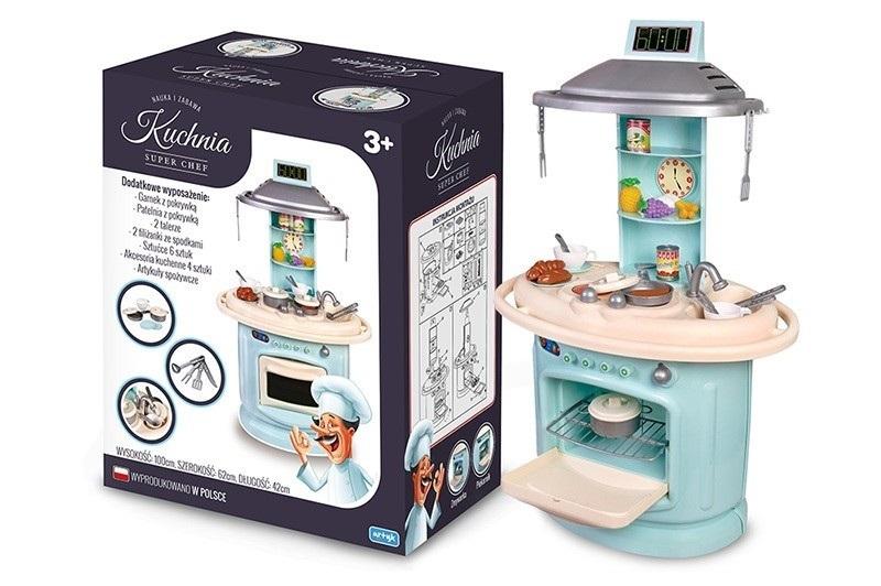 Opis produktuZasady bezpieczeństwaZabawkowa, duża kuchnia to idealny zestaw do dziewczęcego pokoju. W zestawie: garnek z pokrywką, patelnia z pokrywką, 2 talerze, 2 filiżanki ze spodkami, sztućce 6 szt, akcesoria kuchenne 4 szt, art. Spożywcze, owoce, Wymiary po złożeniu: 100 x 62 x 42 cm. Wymiary opakowania: 49 x 63 x 33 cm. Dla dzieci w wieku: 3+