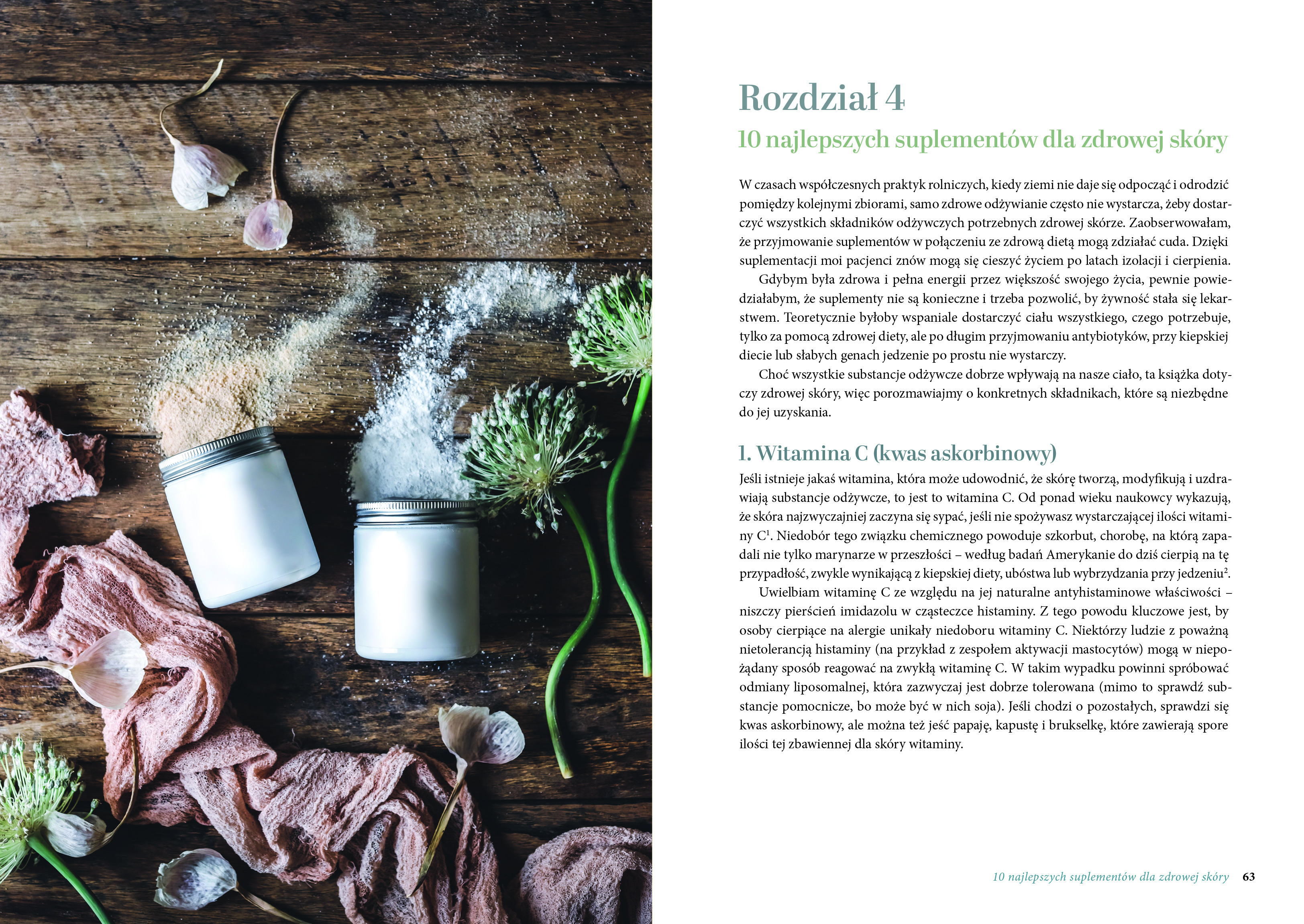 Ta książka pomoże ci zrozumieć, jak skóra reaguje na dietę i emocje. Dowiesz się także, co jeść, żeby twoja cera była zdrowa i wyglądała młodo. Zadbaj o nią od wewnątrz. Przekonaj się, że odpowiednio skomponowana dieta jest lepsza niż drogie zabiegi kosmetyczne. 50 przepisów stworzonych dla twojej skóry! miękkie tacos ze szparagami i czarną fasolą nadadzą wiotkiej skórze jędrność i napięcie, chrupkie gnocchi z batatów ukoją cerę ze skłonnościami do stanów zapalnych, napój z papają i siemieniem lnianym przyniesie ulgę przesuszonej skórze, kąski brukselki pieczone w syropie klonowym pomogą w detoksie zanieczyszczonej cery, uzdrawiające smoothie z konopiami zaradzi wypadającym włosom i łamliwym paznokciom. Dzięki tej książce poznasz też zbawienny wpływ na skórę postu naprzemiennego, dobierzesz suplementy dopasowane do twoich potrzeb i zadbasz o swój mikrobiom. Zrób to holistycznie, bo jesteś tego warta! Karen Fischer jest dyplomowaną dietetyczką i nagradzaną autorką poradników żywieniowych. Specjalizuje się przede wszystkim w leczeniu problemów skórnych. Jedna z jej poprzednich książek, The Healthy Skin Diet, zdobyła Australian Food Media Award w kategorii Best Health, Nutrition or Specific Diet Book. Ta bogato ilustrowana książka dostarcza informacji i edukuje na temat tego, jak utrzymać skórę w optymalnej kondycji poprzez naturalne żywienie i suplementy. Pokazuje co nabijać na widelec, by, działając od wewnątrz, osiągnąć promienną cerę PS News Podróż przez tę wspaniale prezentującą się książkę z zachwycającymi fotografiami uczy i dogłębnie informuje czytelników na temat tego, jak mogą utrzymać swoją skórę w optymalnej kondycji poprzez naturalne żywienie i suplementy Kids' Book Review Powyższy opis pochodzi od wydawcy. x
