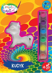 Zawiera figurkę kucyka, farby w 6 kolorach, pędzelek .