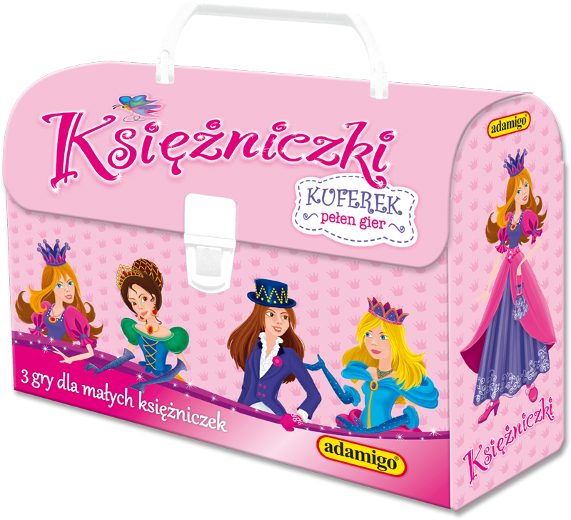 Kuferek zawiera 4 duże, sztywne plansze, 24 kartoniki oraz instrukcję do 3 gier.