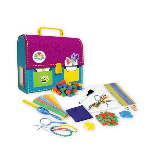 Kuferek ucznia ułatwia rozwijanie kompetencji dotyczących edukacji matematycznej, przyrodniczej, polonistycznej, plastycznej i ruchowej.