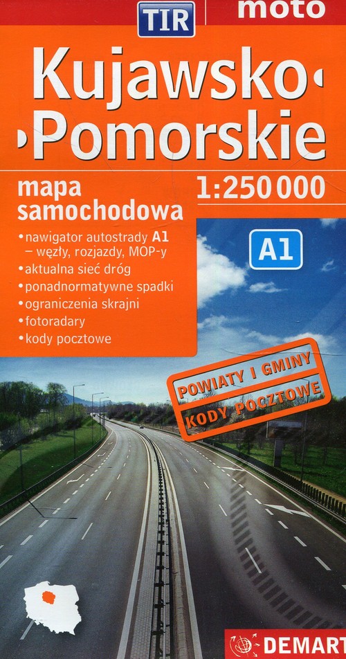 Mapa przeznaczona jest nie tylko dla kierowców zawodowych (TIR-ów, ciężarówek,) ale i dla wszystkich innych kierowców, którzy dużo jeżdżą po Polsce.Ma rozbudowaną treść tematyczną przydatną kierowcom:- aktualną sieć dróg- ponadnormatywne spadki z opisem stopnia nachylenia- pionowe i poziome ograniczenia skrajni- prawdopodobne lokalizacje fotoradarów, - spis kodów pocztowychPrzedstawiona sieć dróg uwzględnia budowane odcinki: autostrad, dróg krajowych i wojewódzkich przewidzianych do użytku do końca 2013 roku.Mapa w skali 1:250 000.