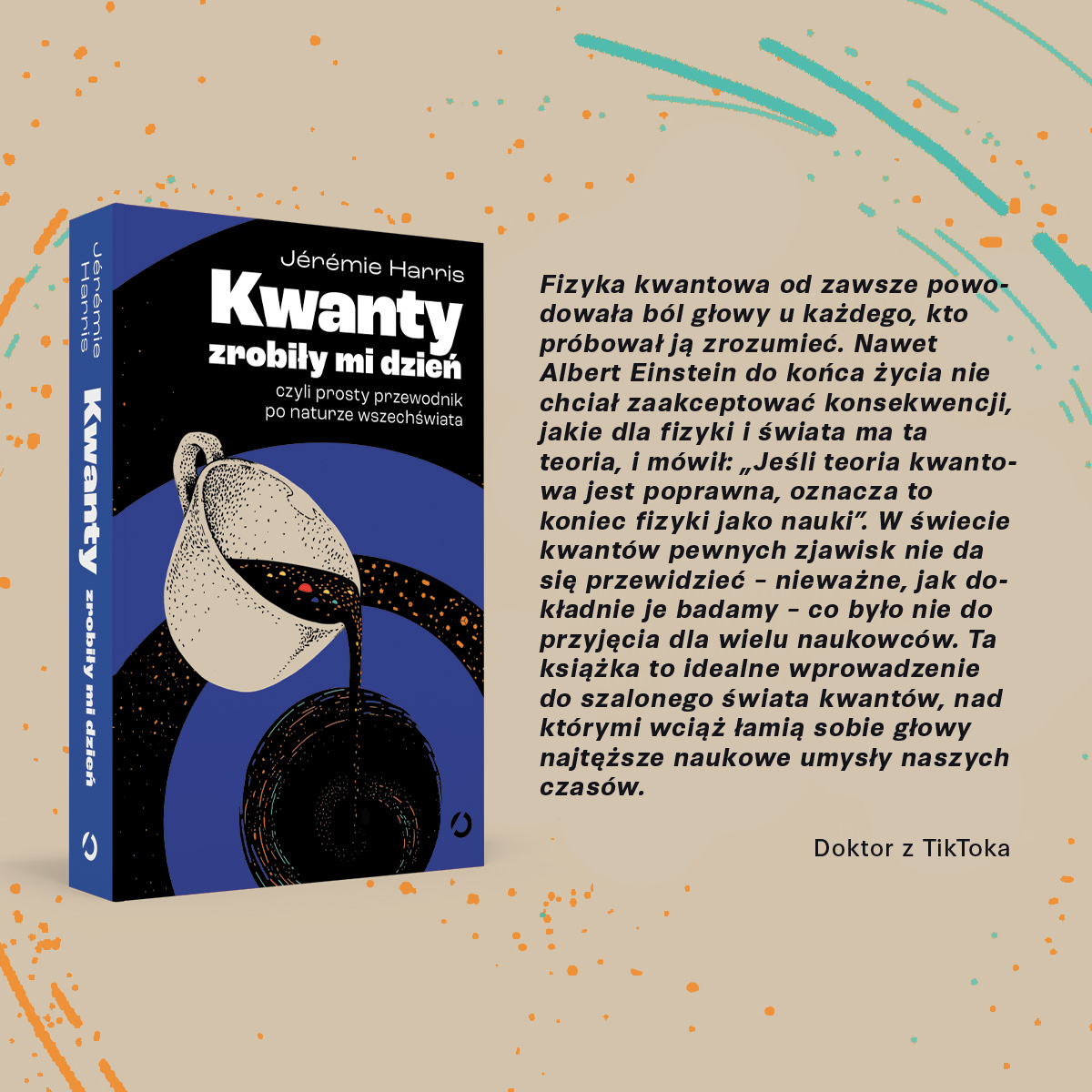 Opis produktuZasady bezpieczeństwaGodzina 7:00. Otwierasz oczy na dźwięk budzika. Myjesz zęby, pijesz ulubioną kawę i rozpoczynasz kolejny dzień we wszechświecie. W drodze do pracy stoisz w korku, słuchasz radia i przeglądasz telefon w poszukiwaniu nowych informacji. W tym samym czasie wokół ciebie wirują niewyobrażalne ilości cząsteczek i atomów, dokonując wyczynów przeczących zdrowemu rozsądkowi: znajdują się w wielu miejscach naraz lub poruszają się w dwóch kierunkach jednocześnie. I chociaż wydawać się to może niepojęte, to prawda jest taka, że kwanty zrobiły ci dzień! W swojej książce Jeremie Harris w przystępny i ciekawy sposób tłumaczy zawiły i fascynujący świat fizyki kwantowej. Opowiada o kotach zombie, nieśmiertelności i o tym, dlaczego twój mózg jest obiektem mechaniki kwantowej. Pokazuje, dlaczego multiświat jest większy, niż sądzimy, a nasze działania z góry ustalone. Weź kubek z ulubioną kawą i zanurz się w świecie fizyki kwantowej. Jeremie Harris - fizyk, który trudne zagadnienia współczesnej nauki przekształca w opowieści fascynujące jak kino sensacyjne. Jako specjalista w dziedzinie sztucznej inteligencji doradzał rządom Kanady, Stanów Zjednoczonych i Wielkiej Brytanii. Prowadzone przez niego badania w dziedzinie mechaniki kwantowej zostały opublikowane w najważniejszych czasopismach fizycznych na świecie. Gdy nie zajmuje się fizyką, pracuje w Hollywood jako konsultant do spraw rzeczywistości alternatywnej. Prawdopodobnie pierwszy człowiek w historii, który za pomoc w przygotowaniu książki chce odwdzięczyć się pieniędzmi... z Monopoly. x