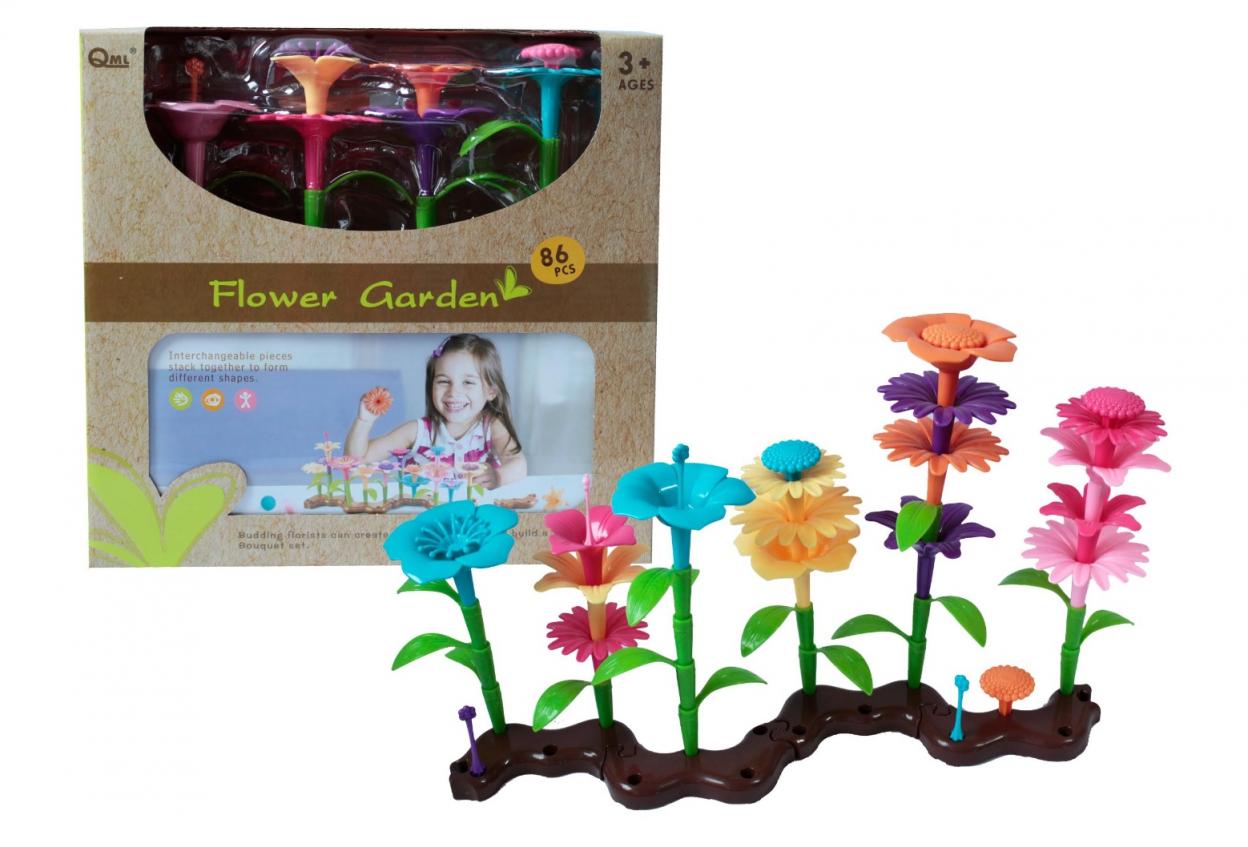 Zestaw zawiera 86 elementów do stworzenia kwiatowego ogródka, którym można ozdobić pokój dziecka. x