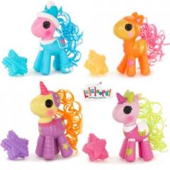 Malutkie, świecące w ciemnościach kucyki Ponies, pochodzą z magicznej karuzeli w Krainie Lalaloopsy. Ubrane w swoje śliczne piżamki, są gotowe na piżamowe przyjęcie. Każdy zestaw zawiera uroczego kucyka ze szczotką w kształcie gwiazdy, którą można czesać grzywę. Malutkie kucyki doskonale nadają się do kolekcjonowania.