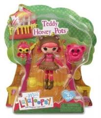 Miodunka ma ubranko uszyte z pluszowego misia. Jest cieplutkie i milutkie. Teddy Honey Pots uwielbia się przytulać i wspinać się po drzewach. Zimą większość czasu spędza na drzemce i podjadaniu pyyyysznego miodku... dopóki nie rozboli jej brzuszek. Ukochanym pupilkiem Teddy jest pszczółka. Lalka została uszyta 10 lipca - w Dniu Pikniku Pluszowych Misiów. Zestaw zawiera lalkę i pupilka.Lalaloopsy to urocze, kolekcjonerskie lalki i mini laleczki, wzorowane na lalkach - szmaciankach. Każda laleczka posiada swoją wyjątkową, niepowtarzalną osobowość, która kształtuje się w procesie tworzenia, a na jej ostateczny wizerunek ma wpływ tkanina, z której powstaje i dzień jej urodzin.Lalaloopsy żyją w kapryśnym świecie, pełnym śmiesznych i zaskakujących zdarzeń. Wystarczy odrobina dziecięcej wyobraźni i miłości, by magiczny świat Lalaloopsy trwał bez końca!Lalaloopsy mają oczy z guzików, uśmiechnięte, ""fastrygowane"" buźki, urocze, wielobarwne stroje. Zapakowane są w śliczne, ozdobne pudełeczka. Każdej laleczce towarzyszy zabawny kompan ukochany pupilek.