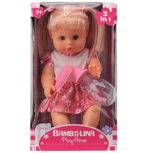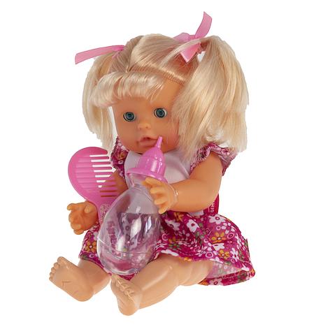 Akcesoria zawierają: grzebień do czesania lalki i buteleczkę do karmienia.