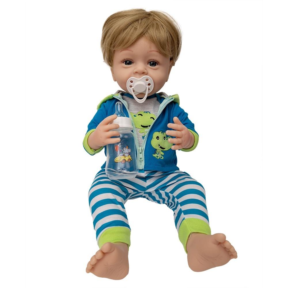 Opis produktuZasady bezpieczeństwaRealistyczna lalka o wysokości 56 cm wykonana z miękkiego tworzywa imitującego skórę dziecka to idealna zabawka dla każdego malucha. Każdy szczegół został zaprojektowany z myślą o autentyczności - zmarszczki nadają jej naturalny wygląd. Lalka ubrana jest w piękne dziecięce ubrania oraz posiada pieluszkę do przebrania, co pozwala na rozwijanie umiejętności opieki nad niemowlakiem. Ponadto w zestawie znajduje się pluszowa żyrafa - ulubiona maskotka bobasa oraz smoczek. Cechy produktu: Wysokość lalki: 56 cm Materiał: Miękkie tworzywo imitujące skórę dziecka Waga lalki: około 2 kg Wymiary opakowania: 20 x 12 x 57 cm x