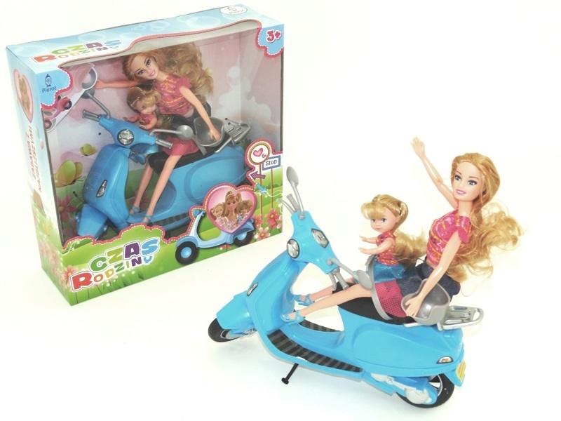 Czas rodziny - lalki matka i córka na skuterze.