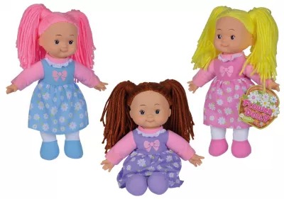 Wełniane lalki Flower Dolly są dostępne w trzech różnych kolorach. Różowe włosy i niebieska sukienka, brązowe włosy i fioletowa sukienka czy żółte włosy i różowa sukienka dzieci mogą same wybrać swoją ulubioną kolorową lalkę. Cała trójka nosi urocze kwieciste sukienki i jest miękka i milutka. x