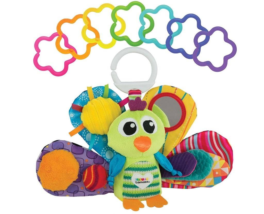 Pawik Jacuś w ozdobnym pudełku z okienkiem. Posiada piórka o różnych fakturach, grzechotkę i gryzaki oraz lusterko.