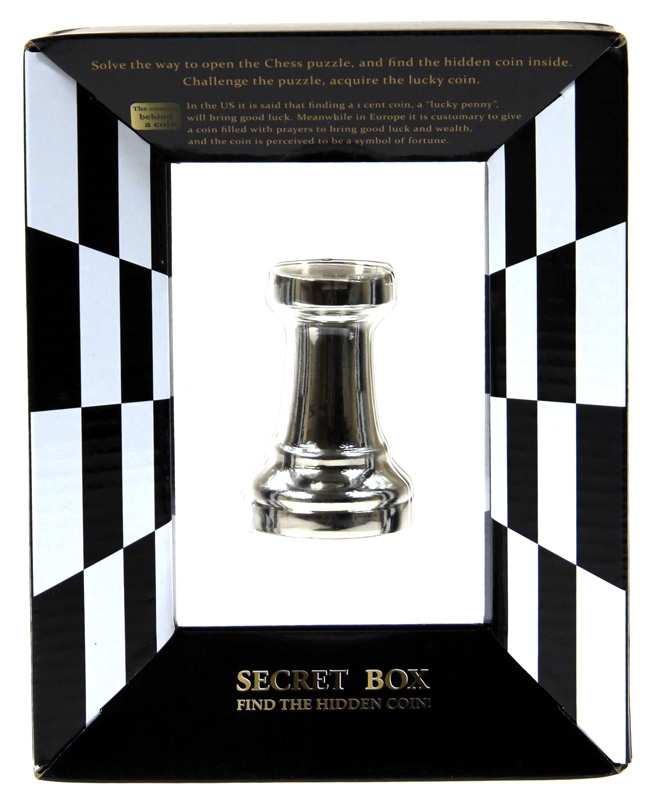 Szachy to strategiczna gra umysłowa, wymagająca skupienia i koncentracji. Aby rozwiązać łamigłówki z serii Szachy, również będziesz musiał odrobinę pogłówkować. Każda figura szachowa kryje w sobie szczęśliwą monetę. Twoim zadaniem jest ją odnaleźć. Spróbuj rozszyfrować tajny system zabezpieczeń - unikalny dla każdej figury. Podejmiesz wyzwanie? Przepięknie wykonane, metalowe figury szachowe to prawdziwy rarytas dla miłośników łamigłówek oraz dla miłośników klasycznej, znanej na całym świecie gry planszowej. Idealne na prezent dla kolekcjonerów. Spróbuj skompletować wszystkie figury i... zagrać w Szachy. Nic nie stoi na przeszkodzie! Monety znajdujące się wewnątrz figur, posiadają oryginalne wzory - każda figura inny. Wzory znajdują się zarówno na awersie, jak i rewersie. Zdjęcie monety nie przedstawia jej rzeczywistej wielkości (średnica monety - 12 mm). Hanayama od ponad siedemdziesięciu lat jest znanym producentem i sprzedawcą zabawek, tradycyjnych gier i łamigłówek. Od samego początku kładł wielki nacisk na twórcze pomysły, wysoką jakość i przyjazną obsługę. Wszystkie prezentowane łamigłówki świetnie sprawdzają się w zróżnicowanym towarzystwie. Bawią, uczą, zmuszają do myślenia i uwolnienia twórczej wyobraźni. Pozwalają na znalezienie ""wspólnego języka"" ludziom w różnym wieku. Często pierwsze, przypadkowe z nimi ""spotkanie"" staje się początkiem wielkiej pasji i łączy całe rodziny wokół wspólnego hobby.