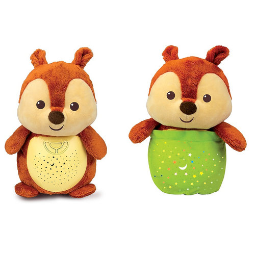Lampka Nocna Projektor Wiewiórka jest połączeniem maskotki z projektorem wyświetlającym obraz rozgwieżdżonego nieba, który dodatkowo uspakaja maluszka grając kołysanki. Ze względu na niewielki rozmiar można go wszędzie zabrać.