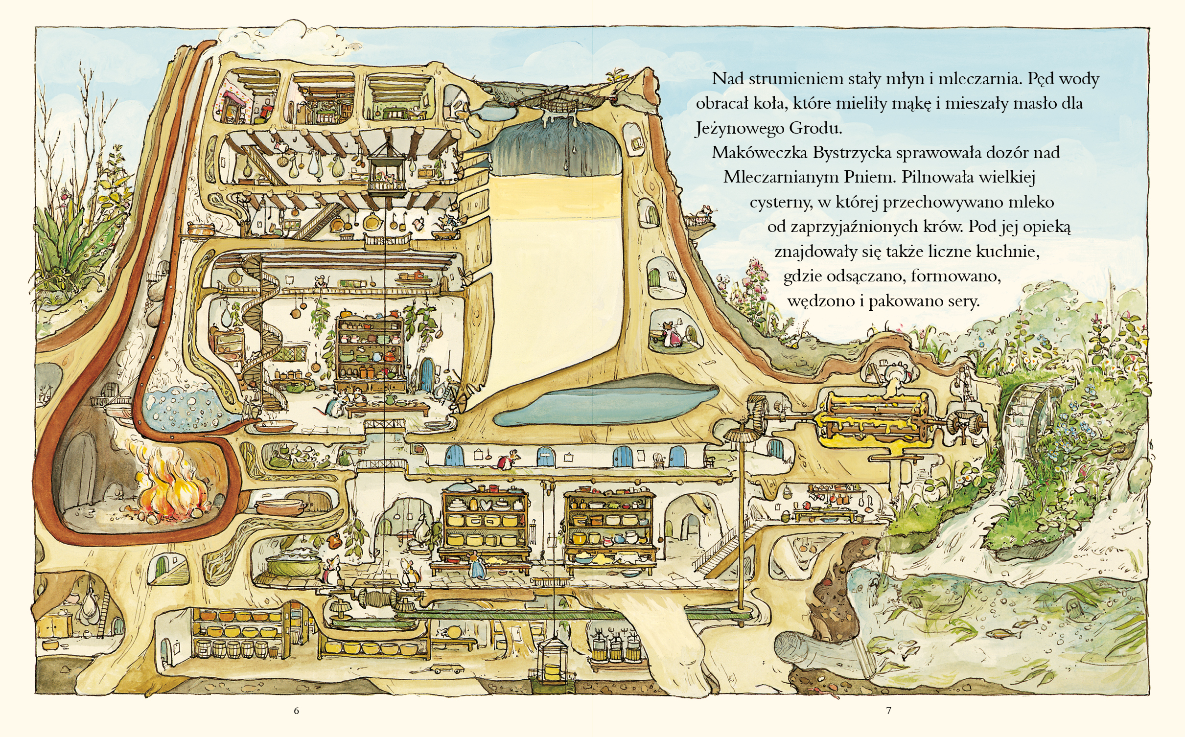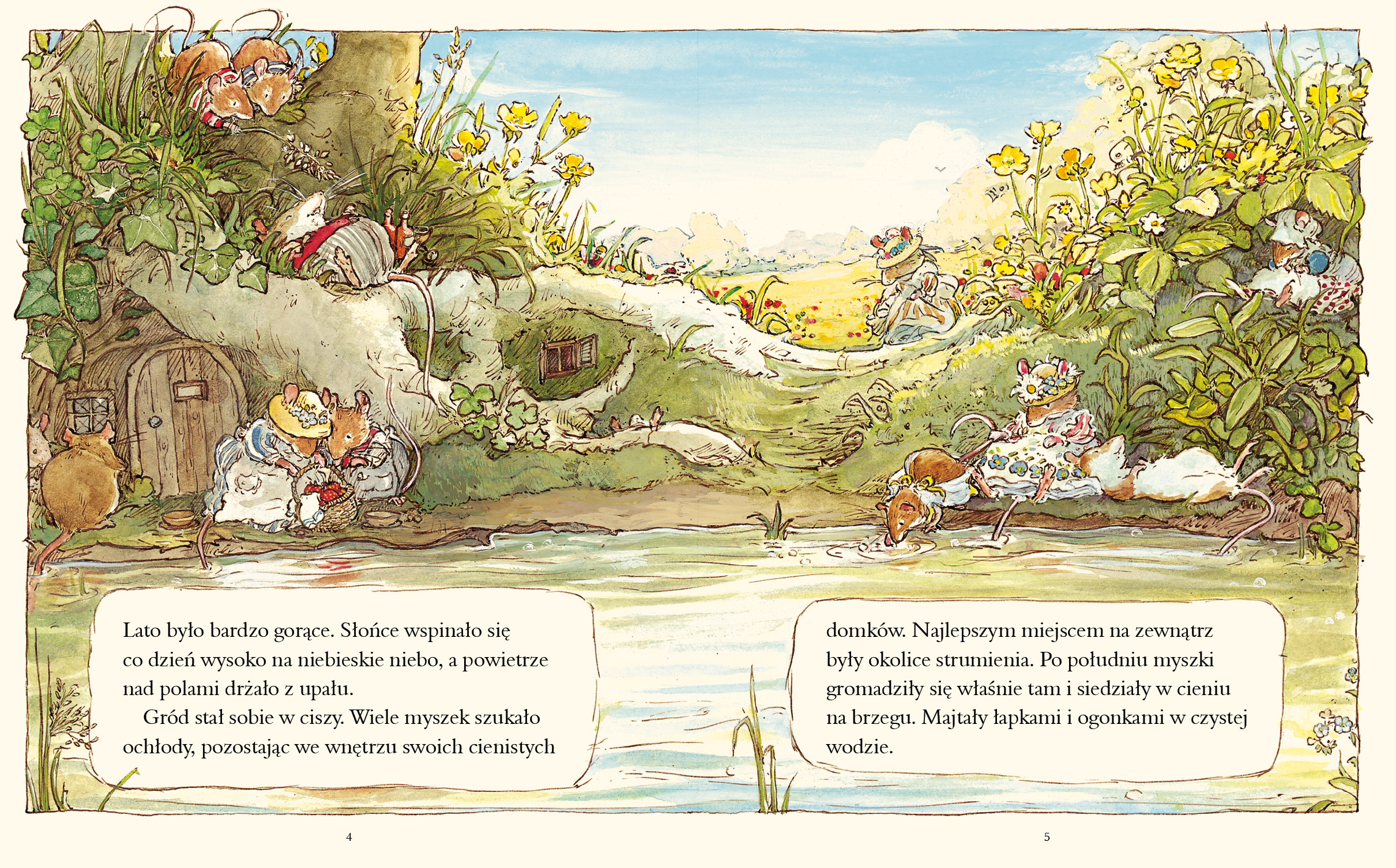 Latem Jeżynowy Gród otulała cisza. Wiele myszek chroniło się przed słońcem w swych domkach lub w cieniu nad brzegiem rzeki. Gorące powietrze unosiło się nad polami. Pełne beztroski, długie czerwcowe dni umiliła wiadomość o zaręczynach panny Makóweczki Bystrzyckiej, nadzorującej Mleczarniany Pień i młynarza Derenia Mączniaka. Najwyższa chwila, by rozpocząć przygotowania do ślubu i wesela nad strumieniem. I tak w kuchniach zapanował ruch, podobne jak w piwnicach pod Składzikiem w Pniu. Nad strumieniem zaroiło się od myszek. Czy wszystko "dopięto na ostatni guzik"? Czy uroczystość przebiegnie zgodnie z planem? "Lato w Jeżynowym Grodzie" to kolejna książeczka autorstwa Jill Barklem z uroczymi mysimi bohaterami, żyjącymi w domkach pośród jeżynowego żywopłotu, pierwiastków, paproci, dzikich róż, wysokich traw i kaczeńców. Tam sąsiedzka pomoc, życzliwość, otwartość i bezinteresowność są filarami współżycia społecznego. Przyjemna opowiastka oraz cudowne ilustracje w stylu retro, pełne są relacji z sielskiego, wiejskiego mysiego życia. Bije z nich spokój i radość chwili, której tak często na co dzień nam brakuje. "Lato w Jeżynowym Grodzie" to wspaniała lektura na wieczór, tuż przed snem. Pomoże się wyciszyć i przenieść myślami do błogich wakacyjnych chwil, kiedy to możemy słodko się polenić. x