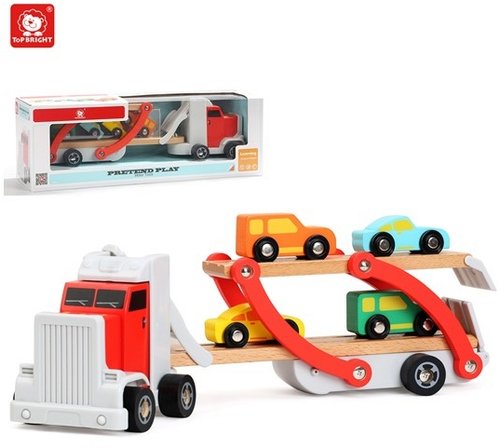 Drewniany TIR z lawetą i samochodzikami firmy TOP BRIGHT.