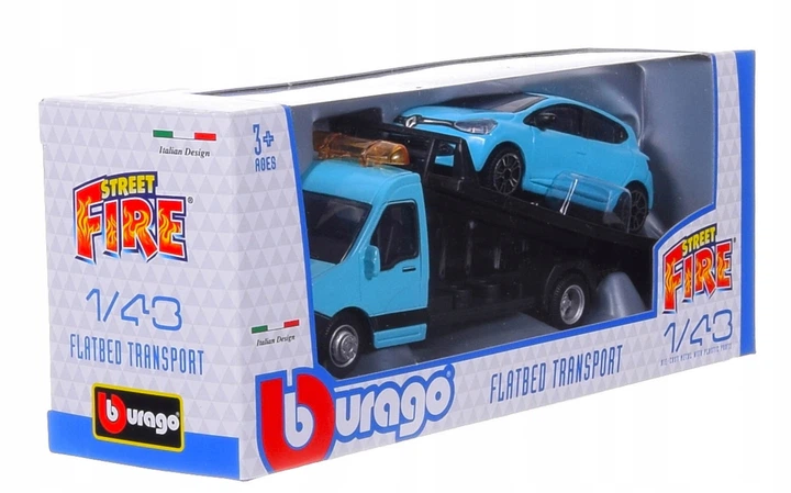 Opis produktuZasady bezpieczeństwaOryginalny model BBurago: laweta transportowa oraz samochód Renault Clio w skali 1:43. Wszystkie repliki pojazdów BBurago wykonane są ze szczególną dbałością o szczegóły. Posiadają wiele ruchomych elementów oraz profilowane opony co sprawia, że wiernie odwzorowują oryginał.