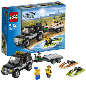 Wskocz do terenówki i ruszaj na plażę w Lego City, aby bawić się na skuterach wodnych! Ustaw przyczepę na pozycji, zatankuj skutery i spuść je na wodę, a potem ruszaj pokonywać fale! Zbierz ten i inne modele z serii Superpojazdy!