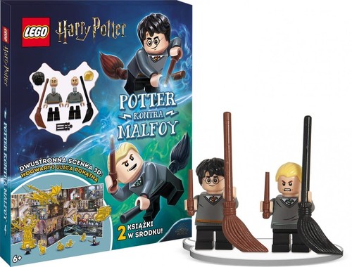 Zestaw książek z rozkładaną scenką 3D i klockami LEGO(R) do kreatywnej zabawy Potter kontra Malfoy przygoda w świecie LEGO(R) Harry'ego Pottera