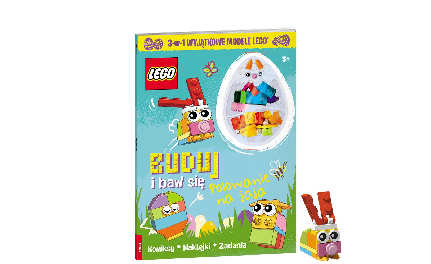 Dołącz do szalonego polowania na pisanki w tej jaj-carskiej książce ze świata LEGO®! Zbuduj jedną z trzech wyjątkowych postaci – skoczną króliczkę, kolorowe jajo wielkanocne albo zaspanego baranka i razem z nimi skacz z jednej aktywności do drugiej. Przeczytaj zabawne komiksy. Rozwiązuj zagadki i zadania oraz pokonuj niezwykłe labirynty. Jest tyle do zrobienia w tej kapitalnej książce. Czas na wielkanocną zabawę!