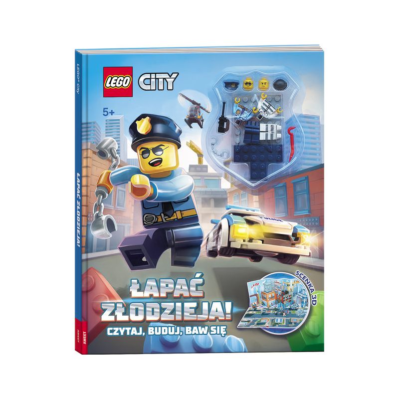 Nie zwlekaj i przeczytaj pełne akcji oraz pościgów opowiadanie. Zbuduj minifigurkę policjanta i rabusia z akcesoriami dodanymi do książki – możesz je wykorzystać z innymi elementami LEGO do dalszej zabawy na dołączonej do książki dwustronnej scence miasta 3D. Stwórz własne zakończenie fantastycznej historii.