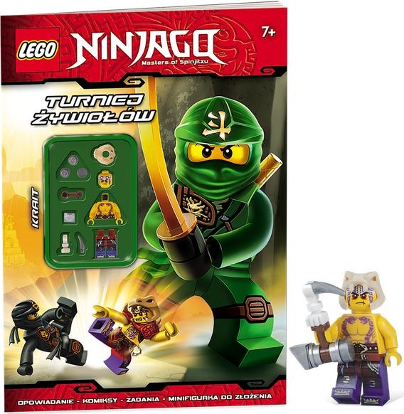 Książka LEGO NINJAGO z minifigurką Turniej żywiołów, to kolejna propozycja dla małych fanów porywającej historii piątki przyjaciół o niezwykłych umiejętnościach ninja. Przygotuj się na nową fascynującą przygodę Mistrzów Spinjitzu. W książce tej znajdziesz opowieść, komiksy, ciekawe zadania oraz minifigurkę Kraita do złożenia.Utrata Zane'a w ostatniej bitwie z Mrocznym Władcą złamała grupę ninja. Jednak gdy młodzi mistrzowie otrzymują od Mistrza Chena tajemnicze zaproszenie na Turniej Żywiołów, niespodziewanie wraca pytanie: czy Zane żyje? Kto jeszcze posiada moce takie jak oni?