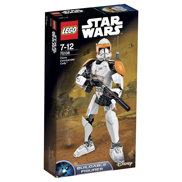 Pomóż superwytrzymałemu komandorowi Cody'emu poprowadzić do bitwy jego armię klonów! Ta niesamowita figurka budowana z klocków LEGO® ma wszystko, czego potrzebujesz, by odtworzyć wielkie bitwy ze świata gwiezdnowojennej sagi, w tym ruchome kończyny, specjalną pomarańczową zbroję oraz budowaną z klocków blasterową strzelbę i plecak. Włóż zbroję, chwyć broń i szykuj się do boju!
